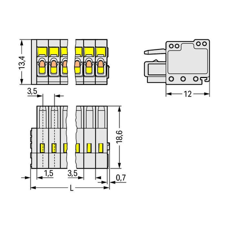 1-conductor female plug; 100% protected against mismating; 1.5 mm²; Pin spacing 3.5 mm; 18-pole; 1,50 mm²; light gray Wago