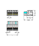 Ratings per: IEC/EN 60664-1; Tesiune nominala (III/3): 320; V Tensiune nominala de supratensiune (III/3): 4; kV Tensiune nominala (III/2): 320; V Tensiune nominala de supratensiune (III/2): 4; kV Tesiune nominala (II/2): 630; V Tensiune nominala de supratensiune (II/2): 4; kV Curent nominal: 16; A Legend (ratings): (III / 2) ≙ Overvoltage category III / Pollution degree 2; Tensiune nominala UL (Use Group B): 300; V Curent nominal UL (Use Group B): 15; A Tensiune nominala UL (Use Group C): 150; V Curent nominal UL (Use Group C): 15; A Tensiune nominala UL (Use Group D): 300; V Curent nominal UL (Use Group D): 10; A Certificari: UL 1059; Tensiune nominala UL 1977: 600; V Curent nominal UL 1977: 15; A Tensiune nominala CSA (Use Group B): 300; V Curent nominal CSA (Use Group B): 15; A Tensiune nominala CSA (Use Group C): 300; V Curent nominal CSA (Use Group C): 15; A Tensiune nominala CSA (Use Group D): 300; V Curent nominal CSA (Use Group D): 10; A Tehnologie conexiune: Push-in CAGE CLAMP®; Tip actionare: Push-button; Solid conductor: 0,2 … 2,5 mm² / 24 … 12 AWG; Fine-stranded conductor: 0,2 … 2,5 mm² / 24 … 12 AWG; Fine-stranded conductor; with insulated ferrule: 0,25 … 1,5 mm²; Fine-stranded conductor; with uninsulated ferrule: 0,25 … 2,5 mm²; Strip length: 10 … 11 mm / 0.39 … 0.43 inch; Numar poli: 8; Numar total de conexiuni: 8; Total number of potentials: 8; Numar tipuri de conexiuni: 1; Numar nivele: 1; Conductor entry direction to mating direction: 0; ° Distanta intre pini: 5 mm / 0.197 inch; Latime: 41,5 mm / 1.634 inch; Inaltime: 15 mm / 0.591 inch; Adancime: 25,6 mm / 1.008 inch; Tip contact (pluggable connector): Conector mama/priza; Connector (connection type): for conductor; Mismating protection: Yes; Culoare: light gray; Material group: I; Material izolator: Polyamide 66 (PA 66); Flammability class per UL94: V0; Clamping spring material: Chrome nickel spring steel (CrNi); Contact material: Copper alloy; Contact plating: tin-plated; Fire load: 0,264; MJ Greutate: 12,8; g Temperatura lucru: -60 … +100 °C; Product Group: 3 (Multi Conn. System); Tip ambalare: BOX; Tara de origine: PL; GTIN: 4045454696702; Customs tariff number: 85366990990;