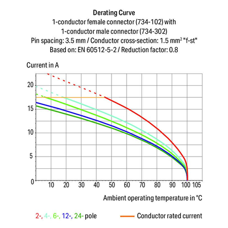 Note (conductor cross-section): Terminating 1.5 mm² conductors is possible; however insulation diameter does not allow clamping units to be terminated in a row.;