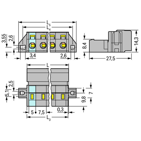 Distanta intre pini: 7,5 mm / 0.295 inch;