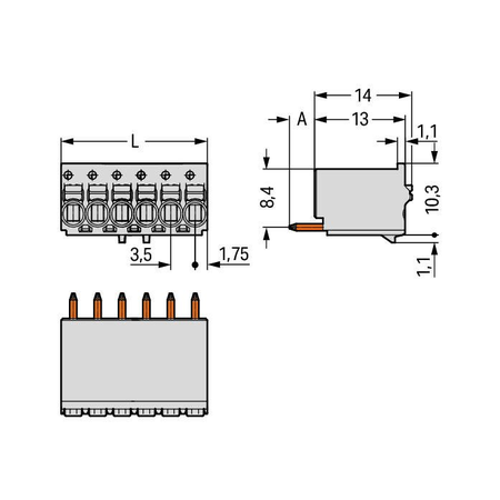1-conductor THT female header; 1.0 mm Ø solder pin; straight; 1.5 mm²; Pin spacing 3.5 mm; 2-pole; 1,50 mm²; light gray Wago