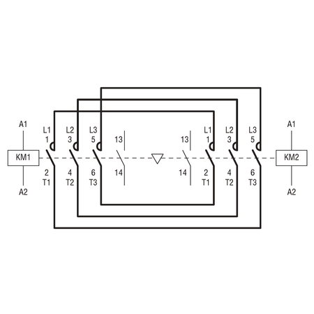 Ansamblu contactori pentru inversare de sens, DC bobina, interblocaj mecanic interior , 12A AC3 IN DC, 5.7KW. bobina tensiune 60VDC Lovato