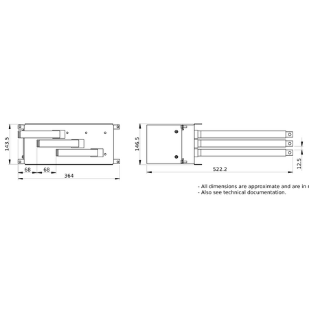 Ansamblu de transfer conexiune pentru NSX250 orizontal fix, cu clapeta, 3P Schneider