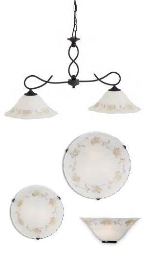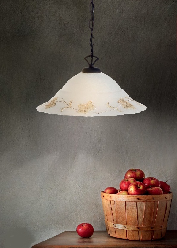 Aplica ce foloseste un cadru metalic, cu finisaj ruginiu. Abajurul este confectionat din sticla centrifugata cu ornamente in relief pictate manual. Aplica este dotata cu 1 bec (neinclus), dar se poate echipa optional cu becuri tip LED, halogen sau economice. Din gama Foglia mai fac parte plafonierele de diferite dimensiuni, lustra cu 2 becuri si pendulurile de dimensiuni diferite, toate regasindu-se in sectiunea de produse compatibile. Fiind un accesoriu de design clasic aduce un plus de rafinament incaperilor si le confera un aer nobil si grandios, indeplinindu-si in acelasi timp si rolul functional.