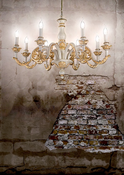 Aplica ce foloseste un cadru metalic imbracat in rasina si modelat manual prin tehnici artizanale ce imita lemnul sculptat. Efectul antic este obtinut prin vopsirea manuala a frunzelor in auriu, argintiu sau alb. Aplica este dotata cu 2 becuri (neincluse), dar se poate echipa optional cu becuri tip LED, halogen sau economice. Din gama Giglio mai fac parte candelabrele cu 8 sau 6 becuri si aplicile cu 2 becuri, toate disponibile in varianta argintie, alba, sau aurie, ce se regasesc in sectiunea de produse compatibile. Fiind un accesoriu de design clasic aduce un plus de rafinament incaperilor si le confera un aer nobil si grandios, indeplinindu-si in acelasi timp si rolul functional.