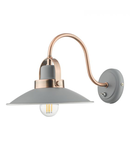 The Liden single wall light features an angular matt grey painted metal shade with copper detailing on a swan neck arm with matching wall plate and toggle switch, offering a more contemporary industrial look.Measurements D29 x H20 x W20cm