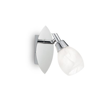 Cadru metalic cromat, cu abajur reglabil realizat din sticla suflata mata pestrita de culoare alba. Aplica este dotata cu 1 bec (inclus), dar se poate echipa optional cu becuri tip LED, halogen sau economice. Din gama Soffio face parte plafoniera cu 4 becuri cat si si aplicele cu, 3 sau 2 becuri, ce se regasesc in sectiunea de produse compatibile. Fiind un accesoriu de design de tip modern aduce un plus de refinament incaperilor indeplinindu-si in acelasi timp si rolul functional. Montajul este posibil pe tavan cat si pe perete.