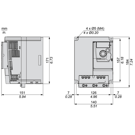 gama de produse: Easy Altivar 310 Tip produs sau componenta: Variator de viteza aplicatie specifica produsului: Aparat simplu stil de asamblare: Cu radiator nume scurt al dispozitivului: ATV310 numar faze in retea: Trifazic [Us] tensiune nominala de alimentare: 380...460 V - 15...10 % putere motor kW: 4 kW pentru pentru sarcini grele 5,5 kW pentru serviciu normal putere motor hp: 5 CP pentru pentru sarcini grele 7,5 CP pentru serviciu normal nivel de zgomot: 50 dB Cantitate pe set: Set de 1 filtru EMC: Fara filtru EMC tip de racire: Ventilator integrat Port protocol de comunicatie: Modbus tipul conectorului: RJ45 (pe partea frontala) pentru Modbus interfata fizica: RS 485 cu 2 fire pentru Modbus cadrul de transmisie: RTU pentru Modbus rata de transmisie: 4800 bit/s 9600 bit/s 19200 bit/s 38400 bit/s numar de adrese: 1…247 pentru Modbus serviciu de comunicare: Read holding registers (03) 29 words Scriere un sigur registru (06) 29 words Write multiple registers (16) 27 words Read/write multiple registers (23) 4/4 words Identificare dispozitiv de citire (43) curent de linie: 13,7 A la 380 V (pentru sarcini grele) 18,0 A la 380 V (serviciu normal) 11,4 A la 460 V (pentru sarcini grele) 14,9 A la 460 V (serviciu normal) putere aparenta: 9,1 kVA la 460 V (pentru sarcini grele) 15,1 kVA la 460 V (serviciu normal) Isc curent de scurtcircuit prezumat: 5 kA ( pentru sarcini grele ) 5 kA ( serviciu normal ) curent la iesire continuu: 9,5 A pentru sarcini grele 12,1 A serviciu normal curent tranzitoriu maxim: 14,3 A in timpul 60 s (pentru sarcini grele) 13,3 A in timpul 60 s (serviciu normal) puterea disipata in W: 115,1 W, at In (pentru sarcini grele) 158,3 W, at In (serviciu normal) frecventa de iesire a convertizorului: 0,5…400 Hz frecventa de comutare nominala: 4 kHz frecventa de comutare: 2...12 kHz reglabil gama de viteza: 1…20 pentru motor asincron cuplu excesiv tranzitoriu: 170…200 % of nominal motor torque depending on drive rating and type of motor cuplu de franare: Up to 150 % of nominal motor torque cu rezistenţă de franare Pana la 70% din cuplul nominal al motorului fără rezistenţă de franare profil de control al motorului asincron: Raport tensiune/frecventa (V/f) Raport tensiune/frecvenţă - economie de energie, pătratic U/f Sensorless vector control (SVC) compensare alunecare motor: Reglabil tensiune de iesire: 380...460 V trifazic conexiune electrica: Borna, capacitate de prindere: 2.5...4 mm², AWG 14...AWG 12 (L1, L2, L3, PA/+, PB, U, V, W) cuplu de strangere: 1,2…1,4 N.m izolatie: Electricintre alimentare si control alimentare: Sursă internă pentru potenţiometrul de referinţă 5 V (4,75…5,25 V)c.c., Sursă internă pentru intrările logice 24 V (20,4…28,8 V)c.c., numarul intrarii analogice: 1 tip de intrare analogica: Curent configurabil AI1 0...20 mA 250 Ohm Tensiune configurabilă AI1 0...10 V 30 kOhm Tensiune configurabilă AI1 0...5 V 30 kOhm numar intrare discreta: 4 tip de intrare discreta: Programabile LI1...LI4 24 V 18...30 V logica de intrare discreta: Logica negativa (derivatie), > 16 V (stare 0), < 10 V (stare 1), impedanta de intrare 3.5 kOhm Logica pozitiva (sursa), 0...< 5 V (stare 0), > 11 V (stare 1) perioada de esantionare: 10 ms pentru ieşire analogică 20 ms, toleranţă +/- 1 ms pentru intrare logica eroare de liniaritate: +/- 0.3 % of maximum value pentru ieşire analogică numarul iesirii analogice: 1 tip iesire analogica: AO1 tensiune configurabilă soft 0...10 V c.a. 0...10 V 0…0,02 A, impedanţă: 470 Ohm, rezoluţie 8 biti AO1 curent configurabil soft 0...20 mA, impedanţă: 800 Ohm, rezoluţie 8 biti numar iesire discreta: 2 tip de iesire discreta: Ieşire logică LO+, LO- Protected relay output R1A, R1B, R1C 1 C/O curentul minim de comutare: 5 mA la 24 V c.c. pentru releu logic curent maxim de comutatie: 2 A la 250 V c.a. pornit inductiv sarcina cos phi = 0,4 L/R = 7 ms pentru releu logic 2 A la 30 V c.c. pornit inductiv sarcina cos phi = 0,4 L/R = 7 ms pentru releu logic 3 A la 250 V c.a. pornit rezistiv sarcina cos phi = 1 L/R = 0 ms pentru releu logic 4 A la 30 V c.c. pornit rezistiv sarcina cos phi = 1 L/R = 0 ms pentru releu logic rampe de accelerare si decelerare: Linear from 0...999.9 s S U franare sau imobil: Cu injectie c.c., tip de protectie: Supratensiune in linia de alimentare Scăderea tensiunii de alimentare Supracurent intre fazele de ieşire şi pămant Protectie la supraincalzire Scurtcircuit intre fazele motorului Against input phase loss in three-phase Thermal motor protection via the drive by continuous calculation of I²t rezolutia frecventei: Intrare analogică convertor A/D, 10 biţi Unitate de afisare 0.1 Hz constanta de timp: 20 ms +/- 1 ms pentru schimbarea referinţei pozitie de operare: Vertical +/- 10 grade inaltime: 184 mm latime: 140 mm adancime: 151 mm greutate neta: 1,8 kg frecventa de alimentare: 50/60 Hz +/- 5 % destinatie produs: Motoare asincrone compatibilitate electromagnetica: Tranzienţi rapizi/test de imunitate la impulsuri de ionizare - test level: nivel 4 conforming to IEC 61000-4-4 Test de imunitate la descarcari electrostatice - test level: nivel 3 conforming to IEC 61000-4-2 Imunitate la perturbaţii conduse - test level: nivel 3 conforming to IEC 61000-4-6 Test de imunitate la frecventa radio radiata - test level: nivel 3 conforming to IEC 61000-4-3 Test de imunitate la căderi de tensiune şi intreruperi conforming to IEC 61000-4-11 Test de imunitate la supratensiuni - test level: nivel 3 conforming to IEC 61000-4-5 standarde: IEC 61800-5-1 IEC 61800-3 certificari produs: UE EAC KC grad de protectie IP: IP20 cu placă obturatoare in partea superioară IP4X sus grad de poluare: 2 conformitate cu IEC 61800-5-1 caracteristica de mediu: Dust pollution resistance class 3S2 conformitate cu IEC 60721-3-3 Chemical pollution resistance class 3C3 conformitate cu IEC 60721-3-3 rezistenta la socuri: 15 gn pentru 11 ms conformitate cu IEC 60068-2-27 umiditate relativa: 5…95 % fără cond