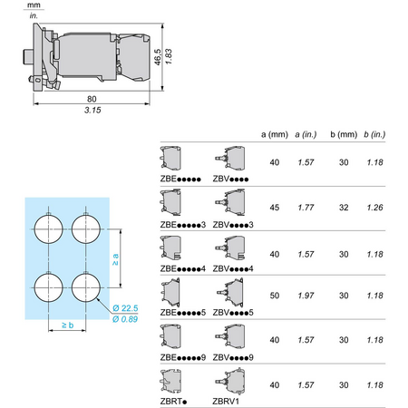 gama de produse: Harmony XB4 Tip produs sau componenta: Ansamblu corp complet/contact si bloc de lumini nume scurt al dispozitivului: ZB4 material inel de fixare: Zamak cantitate indivizibila de vanzare: 1 tip cap: Standard tip si compozitie contacte: 1 NO + 1 NC operare contacte: Decuplare lenta conexiuni - borne: Borne cu surub, <= 2 x 1.5 mm² cu pini conformitate cu IEC 60947-1 Borne cu surub, >= 1 x 0.22 mm² fara terminale de cablu conformitate cu IEC 60947-1 sursa de lumina: Incandescent baza bec: BA 9s alimentare bloc de lumini: Utilizand transformator integral 1,2 VA 6 V [Us] tensiune de alimentare nominala: 220...240 V c.a. la 50/60 Hz CAD latime globala: 30 mm CAD inaltime globala: 47 mm descriere borne ISO nr. 1: (11-12)NC greutate neta: 0,151 kg utilizare contacte: Standard deschidere pozitiva: Cu conformitate cu IEC 60947-5-1 anexa K cursa de operare: 1,5 mm (schimbare stare electrică NC) 2,6 mm (modificarea stării electrice NO) 4,3 mm (cursă totală) forta de actionare: 2 N schimbare stare electrică NC 2,3 N modificarea stării electrice NO cuplul de functionare: 0,05 N.m modificarea stării electrice NO durabilitate mecanica: 5000000 cic cuplu de strangere: 0,8…1,2 N.m conformitate cu IEC 60947-1 forma a capului surubului: Cruce compatibil cu Philips nr. 1 surubelnita Cruce compatibil cu pozidriv No 1 surubelnita Perforat compatibil cu plat O 4 mm surubelnita Perforat compatibil cu plat O 5.5 mm surubelnita Material contacte: Aliaj de argint (Ag/Ni) protectie la scurtcircuit: 10 A cartuş fuzibil tip gG conformitate cu SR EN 60947-5-1 [Ith] curent termic conventional in aer liber: 10 A conformitate cu SR EN 60947-5-1 [Ui] tensiune nominala de izolatie: 600 V (grad de poluare 3) conformitate cu IEC 60947-1 [Uimp] tensiune de tinere la impuls: 6 kV conformitate cu IEC 60947-1 [Ie] curent nominal de utilizare: 3 A la 240 V, AC-15, A600 conformitate cu SR EN 60947-5-1 6 A la 120 V, AC-15, A600 conformitate cu SR EN 60947-5-1 0,1 A la 600 V, DC-13, Q600 conformitate cu SR EN 60947-5-1 0,27 A la 250 V, DC-13, Q600 conformitate cu SR EN 60947-5-1 0,55 A la 125 V, DC-13, Q600 conformitate cu SR EN 60947-5-1 1,2 A la 600 V, AC-15, A600 conformitate cu SR EN 60947-5-1 durabilitate electrica: 1000000 cic, AC-15, 2 A la 230 V, rata de functionare 1000000 cic, AC-15, 3 A la 120 V, rata de functionare 1000000 cic, AC-15, 4 A la 24 V, rata de functionare 1000000 cic, DC-13, 0,2 A la 110 V, rata de functionare 1000000 cic, DC-13, 0,5 A la 24 V, rata de functionare securitatea electrica IEC 60947-5-4: Λ < 10exp(-6) la 5 V si 1 mA in mediu curat conformitate cu SR EN 60947-5-4 Λ < 10exp(-8) la 17 V si 5 mA in mediu curat conformitate cu SR EN 60947-5-4 tip semnalizare: Stabil prezentare dispozitiv: Basic sub-assemblies tratament protector: TH temperatura ambietala pentru depozitare: -40…70 °C temperatura ambientala de functionare: -40…70 °C clasa de protectie la electrocutare: Clasa I conforming to IEC 60536 standarde: UL 60947-1 JIS C8201-5-1 IEC 60947-1 CSA C22.2 No 15 IEC 60947-5-5 SR EN 60947-5-1 SR EN 60947-5-4 JIS C8201-1 certificari produs: DNV listat de UL LROS (Lloyds register of shipping) BV CSA rezistenta la vibratii: 5 gn (f= 2…500 Hz) conforming to IEC 60068-2-6 rezistenta la socuri: 30 gn (durata = 18 ms) pentru half sine wave acceleration conformitate cu IEC 60068-2-27 50 gn (durata = 11 ms) pentru half sine wave acceleration conformitate cu IEC 60068-2-27