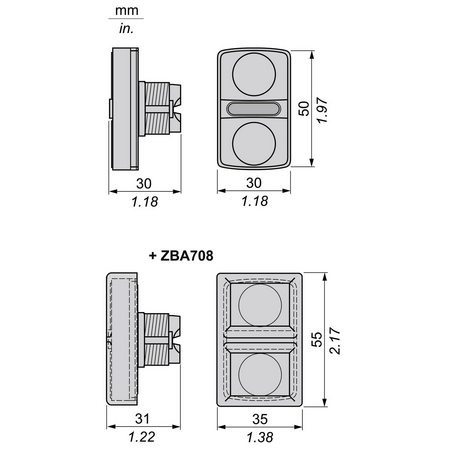 Tip produs sau componenta: Cap pentru buton cu cap dublu iluminat