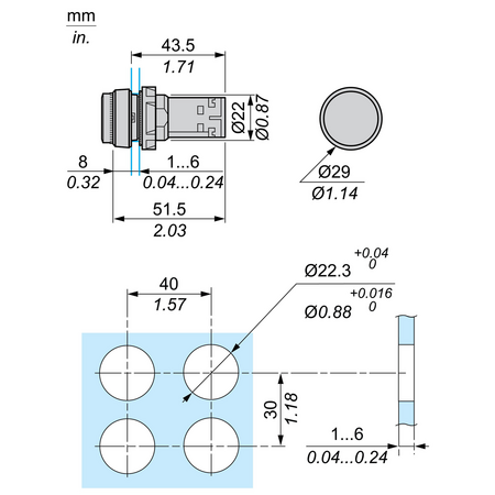 montare dispozitiv: Gaură de fixare - diametru: 22,5 mm 22.3 +0.4/0 conformitate cu IEC 60947-1