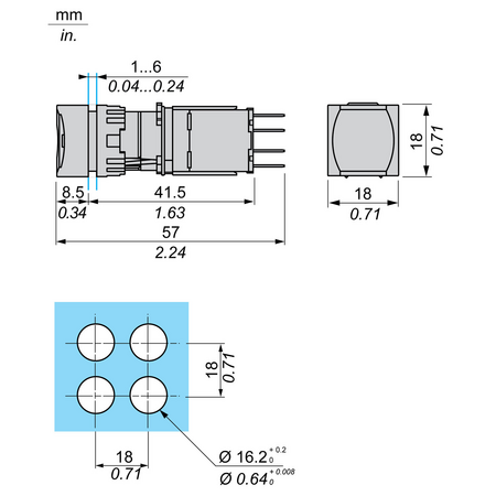 gama de produse: Harmony XB6 Tip produs sau componenta: Buton iluminat complet nume scurt al dispozitivului: XB6 material rama: Plastic diametrul de montaj: 16 mm cantitate indivizibila de vanzare: 1 forma a capului unitatii de semnalizare: Patrat tip de operator: revenire cu arc profil utilizator: Verde Incastrat, nemarcat tip si compozitie contacte: 1 NO + 1 NC operare contacte: Decuplare lenta conexiuni - borne: Conectori Faston, dimensiune conexiune2.8 x 0.5 mm sursa de lumina: LED baza bec: LED integral [Us] tensiune de alimentare nominala: 12...24 V c.a./c.c. CAD latime globala: 18 mm CAD inaltime globala: 18 mm CAD adancime globala: 57 mm descriere borne ISO nr. 1: (21-22)NC (13-14)NO greutate neta: 0,025 kg pozitie de operare: Orice pozitie deschidere pozitiva: Cu conformitate cu IEC 60947-5-1 anexa K cursa de operare: 1 mm (modificarea stării electrice NO) 2 mm (schimbare stare electrică NC) 3,5 mm (cursă totală) forta de actionare: 3,5 N modificarea stării electrice NO 4,5 N schimbare stare electrică NC Material contacte: Aliaj de argint (Ag/Ni) protectie la scurtcircuit: 6 A cartuş fuzibil tip gG [Ui] tensiune nominala de izolatie: 250 V (grad de poluare 3) conformitate cu IEC 60947-1 [Uimp] tensiune de tinere la impuls: 4 kV conformitate cu IEC 60947-1 [Ie] curent nominal de utilizare: 3 A la 120 V, AC-15, B300 conformitate cu SR EN 60947-5-1 1,5 A la 240 V, AC-15, B300 conformitate cu SR EN 60947-5-1 0,1 A la 250 V, DC-13, R300 conformitate cu SR EN 60947-5-1 0,22 A la 125 V, DC-13, R300 conformitate cu SR EN 60947-5-1 durabilitate electrica: 1000000 cic, AC-15 la 230 V, rata de functionare 1000000 cic, DC-13 la 230 V, rata de functionare securitatea electrica IEC 60947-5-4: Λ = 10exp(-8) la 5 V si 1 mA cu nivel de incredere 90 % conformitate cu SR EN 60947-5-4 tip semnalizare: Stabil limitele tensiunii de alimentare: 6…30 V c.a./c.c. consum de curent: 15 mA incercare la supratensiuni tranzitorii: 1 kV contact direct conformitate cu IEC 61000-4-5 2 kV in aer liber conformitate cu IEC 61000-4-5 tratament protector: TC temperatura ambietala pentru depozitare: -40…70 °C temperatura ambientala de functionare: -25…70 °C clasa de protectie la electrocutare: Clasa II conforming to IEC 61140 grad de protectie IP: IP65 conformitate cu SR EN 60529 grad de protectie NEMA: NEMA 13 conformitate cu UL 50 NEMA 4 conformitate cu UL 50 NEMA 4X conformitate cu UL 50 NEMA 13 conformitate cu CSA C22.2 No 94 NEMA 4 conformitate cu CSA C22.2 No 94 NEMA 4X conformitate cu CSA C22.2 No 94 standarde: JIS C 4520 IEC 60947-5-5 SR EN 60947-5-1 IEC 60947-1 JIS C 852 CSA C22.2 No 15 certificari produs: GOST UL CSA CCC rezistenta la vibratii: +/- 3 mm (f= 2…500 Hz) conforming to IEC 60068-2-6 5 gn (f= 2…500 Hz) conforming to IEC 60068-2-6 rezistenta la socuri: 30 gn (durata = 18 ms) pentru half sine wave acceleration conformitate cu IEC 60068-2-27 50 gn (durata = 11 ms) pentru half sine wave acceleration conformitate cu IEC 60068-2-27 rezistenta la tranzienti rapizi: 2 kV conformitate cu IEC 61000-4-4 rezistenta la campuri electromagnetice: 10 V/m conformitate cu IEC 61000-4-3 rezistenta la descarcari electrostatice: 6 kV pe contact (pe părţile metalice) conformitate cu IEC 61000-4-2 8 kV in aer liber (in părţile izolate) conformitate cu IEC 61000-4-2 emisie electromagnetica: Clasa B conformitate cu IEC 55011