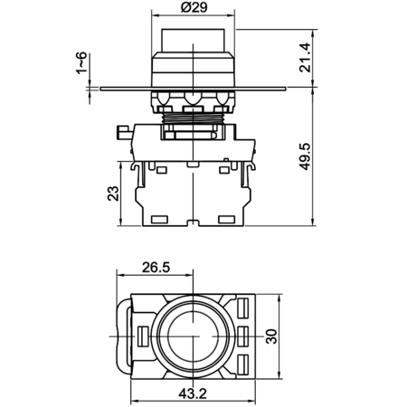 Buton in relief cu semnalizare luminoasa, verde NYG3-HLG 1×NO, 5A/230V AC-15, IP65, LED 230V AC/DC Tracon