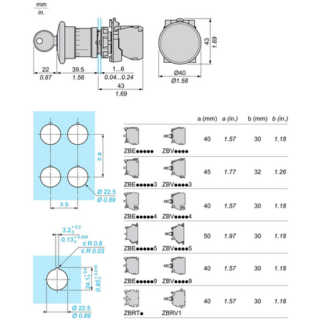 gama de produse: Harmony XB5 Tip produs sau componenta: Emergency stop push-button Emergency switching off push-button nume scurt al dispozitivului: XB5 material rama: Plastic gri inchis material inel de fixare: Plastic tip cap: Standard diametrul de montaj: 22 mm cantitate indivizibila de vanzare: 1 forma a capului unitatii de semnalizare: Rotund tip de operator: acţiune declanşator şi reţinere mecanică resetare: Declansator cu cheie profil utilizator: Rosu ciupercă O 40 mm, nemarcat tip de blocaj: Cheie 455 pozitie de scoatere cheie: Centru tip si compozitie contacte: 1 NC + 1 NO operare contacte: Decuplare lenta conexiuni - borne: Borne cu surub, <= 2 x 1.5 mm² cu pini conformitate cu IEC 60947-1 Borne cu surub, >= 1 x 0.22 mm² fara terminale de cablu conformitate cu IEC 60947-1 prezentare dispozitiv: Produs complet inaltime: 43 mm latime: 40 mm adancime: 100 mm descriere borne ISO nr. 1: (11-12)NC (13-14)NO greutate neta: 0,112 kg rezistenta la spalare cu presiune inalta: 7000000 Pa la 55 °C, distanta : 0.1 m utilizare contacte: Contacte standard deschidere pozitiva: Cu conformitate cu IEC 60947-5-1 anexa K cursa de operare: 1,5 mm (schimbare stare electrică NC) 2,6 mm (modificarea stării electrice NO) 4,3 mm (cursă totală) forta de actionare: 44 N durabilitate mecanica: 300000 cic cuplu de strangere: 0,8…1,2 N.m conformitate cu IEC 60947-1 forma a capului surubului: Cruce compatibil cu Philips nr. 1 surubelnita Cruce compatibil cu pozidriv No 1 surubelnita Perforat compatibil cu plat O 4 mm surubelnita Perforat compatibil cu plat O 5.5 mm surubelnita Material contacte: Aliaj de argint (Ag/Ni) protectie la scurtcircuit: 10 A cartuş fuzibil tip gG conformitate cu SR EN 60947-5-1 [Ith] curent termic conventional in aer liber: 10 A conformitate cu SR EN 60947-5-1 [Ui] tensiune nominala de izolatie: 600 V (grad de poluare 3) conformitate cu IEC 60947-1 [Uimp] tensiune de tinere la impuls: 6 kV conformitate cu IEC 60947-1 [Ie] curent nominal de utilizare: 3 A la 240 V, AC-15, A600 conformitate cu SR EN 60947-5-1 6 A la 120 V, AC-15, A600 conformitate cu SR EN 60947-5-1 0,1 A la 600 V, DC-13, Q600 conformitate cu SR EN 60947-5-1 0,27 A la 250 V, DC-13, Q600 conformitate cu SR EN 60947-5-1 0,55 A la 125 V, DC-13, Q600 conformitate cu SR EN 60947-5-1 1,2 A la 600 V, AC-15, A600 conformitate cu SR EN 60947-5-1 durabilitate electrica: 1000000 cic, AC-15, 2 A la 230 V, rata de functionare 1000000 cic, AC-15, 3 A la 120 V, rata de functionare 1000000 cic, AC-15, 4 A la 24 V, rata de functionare 1000000 cic, DC-13, 0,2 A la 110 V, rata de functionare 1000000 cic, DC-13, 0,5 A la 24 V, rata de functionare securitatea electrica IEC 60947-5-4: Λ < 10exp(-6) la 5 V, 1 mA in mediu curat conformitate cu SR EN 60947-5-4 Λ < 10exp(-8) la 17 V, 5 mA in mediu curat conformitate cu SR EN 60947-5-4 tratament protector: TH temperatura ambietala pentru depozitare: -40…70 °C temperatura ambientala de functionare: -40…70 °C categorie de supratensiune: Clasa II conforming to IEC 60536 grad de protectie IP: IP66 conformitate cu SR EN 60529 IP67 IP69 IP69K grad de protectie NEMA: NEMA 13 NEMA 4X grad de protectie IK: IK03 conforming to IEC 50102 Standarde: IEC 60204-1 JIS C8201-5-1 SR EN 60947-5-4 SR EN 60947-5-1 CSA C22.2 No 15 UL 60947-1 IEC 60364-5-53 ISO 13850 IEC 60947-5-5 IEC 60947-1 JIS C8201-1 certificari produs: CSA LROS (Lloyds register of shipping) BV listat de UL DNV rezistenta la vibratii: 5 gn (f= 2…500 Hz) conforming to IEC 60068-2-6 rezistenta la socuri: 30 gn (durata = 18 ms) pentru half sine wave acceleration conformitate cu IEC 60068-2-27 50 gn (durata = 11 ms) pentru half sine wave acceleration conformitate cu IEC 60068-2-27