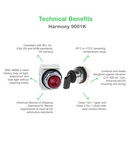 gama de produse: Harmony 9001K Tip produs sau componenta: Intrerupator cu revenire nume scurt al dispozitivului: 9001K tip de operator: revenire cu arc profil utilizator: Rosu Incastrat, nemarcat informatii suplimentare operator: Metal guard material rama: Metal diametrul de montaj: 30 mm forma a capului unitatii de semnalizare: Octogonal tip si compozitie contacte: 1 C/O conexiuni - borne: Borne cu surub 1 x 0.22...2 x 1.5 mm² conformitate cu IEC 60947-1 cuplu de strangere: 0,8 N.m conformitate cu IEC 60947-1 forma a capului surubului: Cu fanteincrucisate durabilitate mecanica: 5000000 cic pozitie de operare: Orice pozitie [Ie] curent nominal de utilizare: 3 A la 240 V, AC-15, A600-Q600 conformitate cu NEMA 0,55 A la 125 V, DC-13, A600-Q600 conformitate cu NEMA [Ui] tensiune nominala de izolatie: 250 V (grad de poluare 3) conformitate cu IEC 60947-1 [Uimp] tensiune de tinere la impuls: 2,5 kV conformitate cu IEC 60947-1 Material contacte: Contacte din aliaj de argint operare contacte: Standard deschidere pozitiva: Fara protectie la scurtcircuit: 10 A cartuş fuzibil conformitate cu SR EN 60947-5-1 [Ith] curent termic conventional in aer liber: 10 A [Icm] capacitatea nominala de inchidere pe scurtcircuit: 12 kA la 600 V AC-15, 7200 VA 15 kA la 480 V AC-15, 7200 VA 30 kA la 240 V AC-15, 7200 VA 60 kA la 120 V AC-15, 7200 VA 0,1 kA la 600 V DC-13 0,27 kA la 250 V DC-13 0,55 kA la 125 V DC-13 capacitate de rupere nominala: 3 kA la 240 V AC-15, 720 VA 6 kA la 120 V AC-15, 720 VA 1,2 kA la 600 V AC-15, 720 VA 1,5 kA la 480 V AC-15, 720 VA 0,1 kA la 600 V DC-13 0,27 kA la 250 V DC-13 0,55 kA la 125 V DC-13 descriere borne ISO nr. 1: (13-14-11-12)OF CAD latime globala: 48 mm CAD inaltime globala: 45 mm CAD adancime globala: 56 mm greutate neta: 0,121 kg prezentare dispozitiv: Produs complet capac/operator sau culoare lentila: Rosu profil operator: Incastrat tip de operator: Revenire cu arc dimensiune: 30 mm standarde: IEC 60947-1 JIS C 4520 SR EN 60947-5-1 CSA C22.2 No 15 JIS C 852 SR EN 60947-5-4 certificari produs: NEMA UL 508 tratament protector: TC temperatura ambietala pentru depozitare: -40…70 °C temperatura ambientala de functionare: -25…70 °C rezistenta la vibratii: 7 gn (f= 2…500 Hz) conforming to IEC 60068-2-6 rezistenta la socuri: 50 gn conformitate cu IEC 60068-2-27 clasa de protectie la electrocutare: Clasa II conforming to IEC 61140 grad de protectie IP: IP66 conformitate cu SR EN 60529 grad de protectie NEMA: NEMA 1 NEMA 12 NEMA 13 NEMA 2 NEMA 3 NEMA 3R NEMA 4