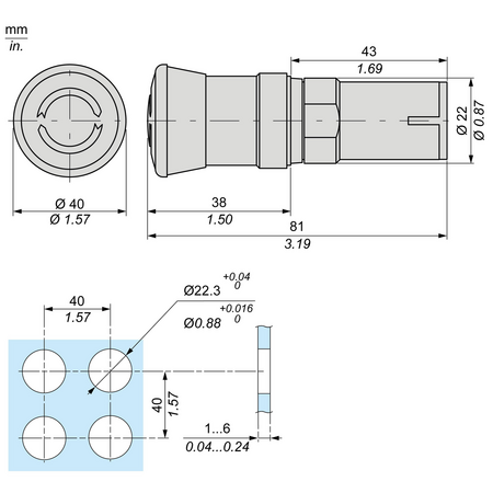 gama de produse: Harmony XB7 Tip produs sau componenta: Emergency stop push-button nume scurt al dispozitivului: XB7 diametrul de montaj: 22 mm cantitate indivizibila de vanzare: 10 forma a capului unitatii de semnalizare: Rotund tip de operator: zăvorare resetare: Rotire pentru eliberare profil utilizator: Rosu ciupercă O 40 mm, nemarcat tip si compozitie contacte: 1 NC conexiuni - borne: Borne cu surub, <= 2 x 1.5 mm² cu pini conformitate cu IEC 60947-1 Borne cu surub, 1 x 0.34...2 x 2.5 mm² fara terminale de cablu conformitate cu IEC 60947-1 prezentare dispozitiv: Monolithic product CAD latime globala: 40 mm CAD inaltime globala: 40 mm CAD adancime globala: 72 mm descriere borne ISO nr. 1: (11-12)NC greutate neta: 0,035 kg montare dispozitiv: Gaură de fixare - diametru: 22,5 mm 22.3 +0.4/0 conformitate cu IEC 60947-1 centru de fixare: >= 30 x 40 mm (suport panou) metal - grosime: 1…6 mm >= 30 x 40 mm (suport panou) plastic - grosime: 2…6 mm mod de fixare: Piuliţă de fixare sub cap 2…2,4 N.m operare contacte: Salt al curentului de iesire utilizare contacte: Standard deschidere pozitiva: Cu conformitate cu IEC 60947-5-1 anexa K durabilitate mecanica: 100000 cic cuplu de strangere: 0,8…1,2 N.m conformitate cu IEC 60947-1 forma a capului surubului: Cruce compatibil cu JIS No 1 surubelnita Cruce compatibil cu Philips nr. 1 surubelnita Cruce compatibil cu pozidriv No 1 surubelnita Perforat compatibil cu plat O 4 mm surubelnita Perforat compatibil cu plat O 5.5 mm surubelnita protectie la scurtcircuit: 4 A cartuş fuzibil tip gG conformitate cu SR EN 60947-5-1 [Ui] tensiune nominala de izolatie: 250 V (grad de poluare 3) conformitate cu IEC 60947-1 [Uimp] tensiune de tinere la impuls: 4 kV conformitate cu IEC 60947-1 [Ie] curent nominal de utilizare: 0,1 A la 250 V, DC-13, R300 conformitate cu SR EN 60947-5-1 0,22 A la 125 V, DC-13, R300 conformitate cu SR EN 60947-5-1 0,75 A la 240 V, AC-15, C300 conformitate cu SR EN 60947-5-1 1,5 A la 120 V, AC-15, C300 conformitate cu SR EN 60947-5-1 durabilitate electrica: 1000000 cic, DC-13, 0,3 A la 24 V, rata de functionare 1000000 cic, AC-15, 0,03 A la 230 V, rata de functionare 1000000 cic, AC-15, 0,09 A la 240 V, rata de functionare securitatea electrica IEC 60947-5-4: Λ < 5 x 10exp(-7) la 17 V si 5 mA conformitate cu SR EN 60947-5-4 tratament protector: TH temperatura ambietala pentru depozitare: -40…70 °C temperatura ambientala de functionare: -25…70 °C clasa de protectie la electrocutare: Clasa II conforming to IEC 60536 grad de protectie IP: IP20 conformitate cu SR EN 60529 (cu spatele in faţă) IP65 conformitate cu SR EN 60529 (fata frontala) Enclosure Type: Type 12 Type 3 standarde: IEC 60947-1 UL 60947-1 CSA C22.2 No 15 SR EN 60947-5-1 IEC 60947-5-5 IEC 60364-5-53 IEC 60204-1 ISO 13850 certificari produs: CCC GOST rezistenta la vibratii: 5 gn (f= 2…500 Hz) conforming to IEC 60068-2-6 rezistenta la socuri: 15 gn (durata = 11 ms) pentru half sine wave acceleration conformitate cu IEC 60068-2-27
