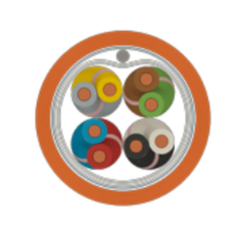 Constructia include ecranaj din folie de aluminiu pentru protectie la interferente si un conductor de masa cu diametrul 0.8 mm. Manta LSZH de culoare portocaliu asigura protectie suplimentara si conformitate cu cerintele pentru cabluri destinate sistemelor de siguranta.