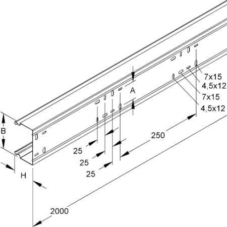 Canal de cablu cu perforare inferioara, cu capac LLK 60.200 R Niedax