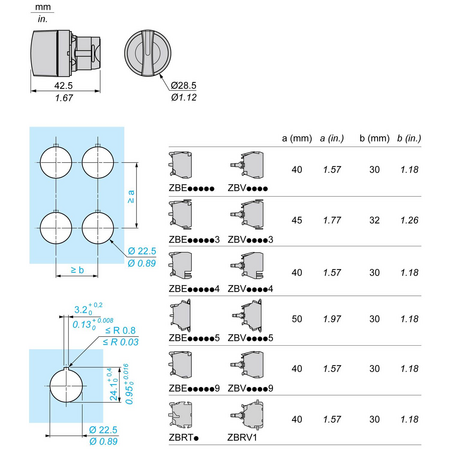 diametrul de montaj: 22 mm