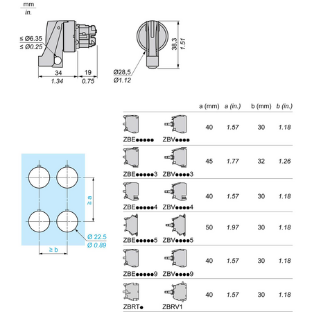 diametrul de montaj: 22 mm