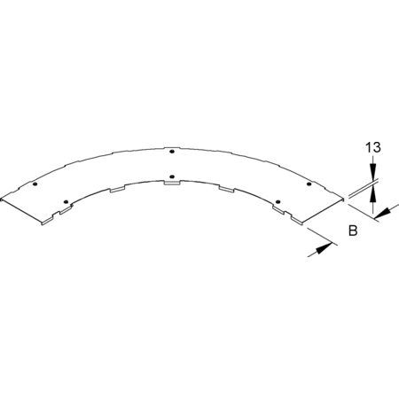 Capac pentru cot 90° pentru scara de cablu, mic, latime 403 mm, otel, prezincat conform DIN EN 10346 Capac, cu suruburi de rotire premontate, capac independent de inaltime pentru cot scara de cablu 90°, mic. Datorita influentelor externe, de ex. vant, utilizarea in aer liber este posibila numai cu o fixare suplimentara (suruburi autofiletante, banda de otel etc.).