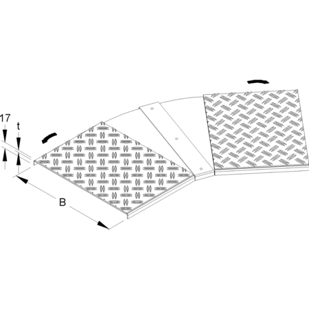 Capac pentru fixare unghiulara reglabila 0-90° pentru jgheab de cabluri, latime 205 mm, otel, prezincat conform DIN EN 10346 Capac antiderapant R10 conform DIN 51130, versiune grea, cu placuta grea din aluminiu nituita, fara incuietori cu suruburi rotite, capac pentru fixarea cablului reglabil de inaltime independent de inaltime Unghi reglabil flexibil de 0-90°, capac suprapus la imbinari. Capacul este fixat exclusiv prin intermediul arcului de retinere a capacului RHFFS 9. Acesta a fost special conceput pentru pozitia orizontala a capacului. La fixare trebuie sa se asigure ca se mentine o distanta minima de 50 mm pana la inceputul/sfarsitul capacului. Alte acoperiri anti-alunecare sunt disponibile la cerere. Pentru a sustine capacul pe jos, va rugam sa respectati numarul minim de benzi de bariera (vezi Banda de bariera RTSKQ... AL, RTSQF... si RW...-...)!