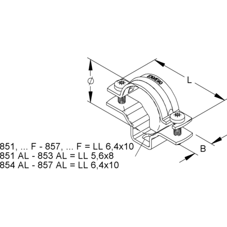 Clema de distanta pentru conducte si cabluri, cablu O 47-55 mm, fanta de montare, aluminiu Clema de distanta pentru conducte si cabluri, cu orificiu lung de fixare, pentru insurubare cu ancorata DAM 6X... sau ancora cu surub NSA 6X.../FKK-T30.