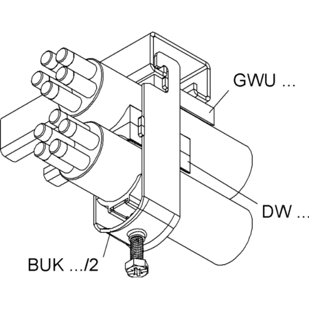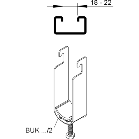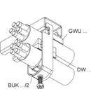 Clema universala in U, pentru 2 cabluri, O42-46 mm, latime fanta 18-22 mm, otel, zincat la cald DIN EN ISO 1461, w. jgheab de presiune din plastic Colier universal in U, inclusiv jgheab de presiune din plastic cu protectie UV si surub pivot M8 cu antrenare multipla.