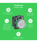 gama de produse: Harmony XB5 Tip produs sau componenta: Selector nume scurt al dispozitivului: XB5 material rama: Plastic gri inchis tip cap: Standard diametrul de montaj: 22,5 mm cantitate indivizibila de vanzare: 1 forma a capului unitatii de semnalizare: Rotund tip de operator: fără revenire profil utilizator: Negru maner standard informatii de pozitie operator: 2 pozitii 90° tip si compozitie contacte: 1 NO operare contacte: Decuplare lenta conexiuni - borne: Borne cu surub, <= 2 x 1.5 mm² cu pini conformitate cu IEC 60947-1 Borne cu surub, >= 1 x 0.22 mm² fara terminale de cablu conformitate cu IEC 60947-1 inaltime: 42 mm latime: 30 mm adancime: 70 mm descriere borne ISO nr. 1: (13-14)NO greutate neta: 0,043 kg rezistenta la spalare cu presiune inalta: 7000000 Pa la 55 °C, distanta : 0.1 m utilizare contacte: Contacte standard deschidere pozitiva: Fara valoare cuplu: 0,14 N.m modificarea stării electrice NO durabilitate mecanica: 1000000 cic cuplu de strangere: 0,8…1,2 N.m conformitate cu IEC 60947-1 forma a capului surubului: Cruce compatibil cu Philips nr. 1 surubelnita Cruce compatibil cu pozidriv No 1 surubelnita Perforat compatibil cu plat O 4 mm surubelnita Perforat compatibil cu plat O 5.5 mm surubelnita Material contacte: Aliaj de argint (Ag/Ni) protectie la scurtcircuit: 10 A cartuş fuzibil tip gG conformitate cu SR EN 60947-5-1 [Ith] curent termic conventional in aer liber: 10 A conformitate cu SR EN 60947-5-1 [Ui] tensiune nominala de izolatie: 600 V (grad de poluare 3) conformitate cu IEC 60947-1 [Uimp] tensiune de tinere la impuls: 6 kV conformitate cu IEC 60947-1 [Ie] curent nominal de utilizare: 3 A la 240 V, AC-15, A600 conformitate cu SR EN 60947-5-1 6 A la 120 V, AC-15, A600 conformitate cu SR EN 60947-5-1 0,1 A la 600 V, DC-13, Q600 conformitate cu SR EN 60947-5-1 0,27 A la 250 V, DC-13, Q600 conformitate cu SR EN 60947-5-1 0,55 A la 125 V, DC-13, Q600 conformitate cu SR EN 60947-5-1 1,2 A la 600 V, AC-15, A600 conformitate cu SR EN 60947-5-1 durabilitate electrica: 1000000 cic, AC-15, 2 A la 230 V, rata de functionare 1000000 cic, AC-15, 3 A la 120 V, rata de functionare 1000000 cic, AC-15, 4 A la 24 V, rata de functionare 1000000 cic, DC-13, 0,2 A la 110 V, rata de functionare 1000000 cic, DC-13, 0,5 A la 24 V, rata de functionare securitatea electrica IEC 60947-5-4: Λ < 10exp(-6) la 5 V, 1 mA in mediu curat conformitate cu SR EN 60947-5-4 Λ < 10exp(-8) la 17 V, 5 mA in mediu curat conformitate cu SR EN 60947-5-4 prezentare dispozitiv: Produs complet tratament protector: TH temperatura ambietala pentru depozitare: -40…70 °C temperatura ambientala de functionare: -40…70 °C clasa de protectie la electrocutare: Clasa II conforming to IEC 60536 grad de protectie IP: IP67 conformitate cu SR EN 60529 IP69 IP69K grad de protectie NEMA: NEMA 13 NEMA 4X grad de protectie IK: IK04 conforming to IEC 50102 Standarde: IEC 60947-1 SR EN 60947-5-4 SR EN 60947-5-1 JIS C8201-5-1 UL 60947-1 CSA C22.2 No 15 JIS C8201-1 certificari produs: BV UL CSA DNV LROS (Lloyds register of shipping) rezistenta la vibratii: 5 gn (f= 2…500 Hz) conforming to IEC 60068-2-6 rezistenta la socuri: 30 gn (durata = 18 ms) pentru half sine wave acceleration conformitate cu IEC 60068-2-27 50 gn (durata = 11 ms) pentru half sine wave acceleration conformitate cu IEC 60068-2-27