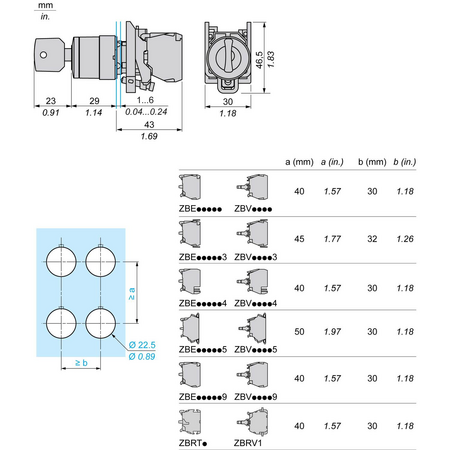 gama de produse: Harmony XB4 Tip produs sau componenta: Selector nume scurt al dispozitivului: XB4 material rama: Metal cromat material inel de fixare: Zamak diametrul de montaj: 22,5 mm cantitate indivizibila de vanzare: 1 tip cap: Standard forma a capului unitatii de semnalizare: Rotund tip de operator: fără revenire profil utilizator: Negru comutator cu cheie informatii de pozitie operator: 2 pozitii 90° tip si compozitie contacte: 1 NO operare contacte: Decuplare lenta conexiuni - borne: Borne cu surub, <= 2 x 1.5 mm² cu pini conformitate cu IEC 60947-1 Borne cu surub, >= 1 x 0.22 mm² fara terminale de cablu conformitate cu IEC 60947-1 inaltime: 47 mm latime: 30 mm adancime: 86 mm descriere borne ISO nr. 1: (13-14)NO greutate neta: 0,117 kg rezistenta la spalare cu presiune inalta: 7000000 Pa la 55 °C, distanta : 0.1 m tip de blocaj: Cheie 455 pozitie de scoatere cheie: In orice pozitie utilizare contacte: Contacte standard deschidere pozitiva: Fara valoare cuplu: 0,14 N.m modificarea stării electrice NO durabilitate mecanica: 1000000 cic cuplu de strangere: 0,8…1,2 N.m conformitate cu IEC 60947-1 forma a capului surubului: Cruce compatibil cu Philips nr. 1 surubelnita Cruce compatibil cu pozidriv No 1 surubelnita Perforat compatibil cu plat O 4 mm surubelnita Perforat compatibil cu plat O 5.5 mm surubelnita Material contacte: Aliaj de argint (Ag/Ni) protectie la scurtcircuit: 10 A cartuş fuzibil tip gG conformitate cu SR EN 60947-5-1 [Ith] curent termic conventional in aer liber: 10 A conformitate cu SR EN 60947-5-1 [Ui] tensiune nominala de izolatie: 600 V (grad de poluare 3) conformitate cu IEC 60947-1 [Uimp] tensiune de tinere la impuls: 6 kV conformitate cu IEC 60947-1 [Ie] curent nominal de utilizare: 3 A la 240 V, AC-15, A600 conformitate cu SR EN 60947-5-1 6 A la 120 V, AC-15, A600 conformitate cu SR EN 60947-5-1 0,1 A la 600 V, DC-13, Q600 conformitate cu SR EN 60947-5-1 0,27 A la 250 V, DC-13, Q600 conformitate cu SR EN 60947-5-1 0,55 A la 125 V, DC-13, Q600 conformitate cu SR EN 60947-5-1 1,2 A la 600 V, AC-15, A600 conformitate cu SR EN 60947-5-1 durabilitate electrica: 1000000 cic, AC-15, 2 A la 230 V, rata de functionare 1000000 cic, AC-15, 3 A la 120 V, rata de functionare 1000000 cic, AC-15, 4 A la 24 V, rata de functionare 1000000 cic, DC-13, 0,2 A la 110 V, rata de functionare 1000000 cic, DC-13, 0,5 A la 24 V, rata de functionare securitatea electrica IEC 60947-5-4: Λ < 10exp(-6) la 5 V si 1 mA in mediu curat conformitate cu SR EN 60947-5-4 Λ < 10exp(-8) la 17 V si 5 mA in mediu curat conformitate cu SR EN 60947-5-4 prezentare dispozitiv: Produs complet tratament protector: TH temperatura ambietala pentru depozitare: -40…70 °C temperatura ambientala de functionare: -40…70 °C categorie de supratensiune: Class I conforming to IEC 60536 grad de protectie IP: IP66 conformitate cu SR EN 60529 IP69 IP69K IP67 grad de protectie NEMA: NEMA 13 NEMA 4X grad de protectie IK: IK06 with keyhole cover ZBGP conforming to IEC 50102 standarde: SR EN 60947-5-1 IEC 60947-5-5 SR EN 60947-5-4 CSA C22.2 No 15 IEC 60947-1 JIS C8201-5-1 UL 60947-1 JIS C8201-1 certificari produs: BV UL CSA DNV LROS (Lloyds register of shipping) rezistenta la vibratii: 5 gn (f= 2…500 Hz) conforming to IEC 60068-2-6 rezistenta la socuri: 30 gn (durata = 18 ms) pentru half sine wave acceleration conformitate cu IEC 60068-2-27 50 gn (durata = 11 ms) pentru half sine wave acceleration conformitate cu IEC 60068-2-27