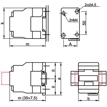 Tensiunea nominala de actionare: 110 V~Curent nominal de lucru AC-3 (A): 18Putere maxima comutata (kW): 7,5: b (mm)