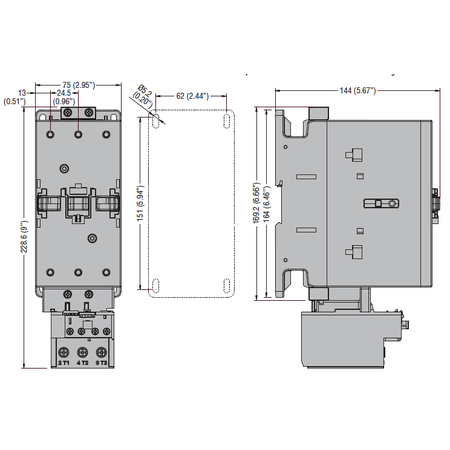 Contactor tripolar, Curent lucru (AC3) = 95A, AC bobina 60HZ, 48VAC Lovato