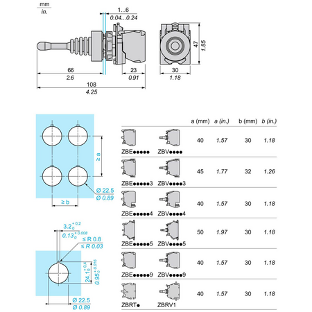 gama de produse: Harmony XB5 Tip produs sau componenta: Joystick controller nume scurt al dispozitivului: XD5 material rama: Plastic material inel de fixare: Plastic diametrul de montaj: 22 mm cantitate indivizibila de vanzare: 1 forma a capului unitatii de semnalizare: Rotund tip de operator: fără revenire profil utilizator: manetă lungă de operare 54 mm informatii de pozitie operator: 3 pozitii informatii directie operator: 2 directii conexiuni - borne: Borne cu surub, <= 2 x 1.5 mm² cu pini conformitate cu IEC 60947-1 Borne cu surub, >= 1 x 0.22 mm² fara terminale de cablu conformitate cu IEC 60947-1 inaltime: 47 mm latime: 30 mm adancime: 108 mm rezistenta la spalare cu presiune inalta: 7000000 Pa la 55 °C, distanta : 0.1 m crestatura pe sens: 1 tip si compozitie contacte: 1 NO operare contacte: Decuplare lenta utilizare contacte: Standard deschidere pozitiva: Fara durabilitate mecanica: 1000000 cic prezentare dispozitiv: Produs complet cuplu de strangere: 0,8…1,2 N.m conformitate cu IEC 60947-1 forma a capului surubului: Cruce compatibil cu Philips nr. 1 surubelnita Cruce compatibil cu pozidriv No 1 surubelnita Perforat compatibil cu plat O 4 mm surubelnita Perforat compatibil cu plat O 5.5 mm surubelnita Material contacte: Aliaj de argint (Ag/Ni) protectie la scurtcircuit: 10 A cartuş fuzibil tip gG conformitate cu SR EN 60947-5-1 [Ith] curent termic conventional in aer liber: 10 A conformitate cu SR EN 60947-5-1 [Ui] tensiune nominala de izolatie: 600 V (grad de poluare 3) conformitate cu IEC 60947-1 [Uimp] tensiune de tinere la impuls: 6 kV conformitate cu IEC 60947-1 [Ie] curent nominal de utilizare: 0,1 A la 250 V, DC-13, R300 conformitate cu SR EN 60947-5-1 0,22 A la 125 V, DC-13, R300 conformitate cu SR EN 60947-5-1 durabilitate electrica: 1000000 cic, AC-15, 2 A la 230 V, rata de functionare 1000000 cic, AC-15, 3 A la 120 V, rata de functionare 1000000 cic, AC-15, 4 A la 24 V, rata de functionare 1000000 cic, DC-13, 0,2 A la 110 V, rata de functionare 1000000 cic, DC-13, 0,5 A la 24 V, rata de functionare securitatea electrica IEC 60947-5-4: Λ < 10exp(-6) la 5 V si 1 mA in mediu curat conformitate cu SR EN 60947-5-4 Λ < 10exp(-8) la 17 V si 5 mA in mediu curat conformitate cu SR EN 60947-5-4 tratament protector: TH temperatura ambietala pentru depozitare: -40…70 °C temperatura ambientala de functionare: -25…70 °C clasa de protectie la electrocutare: Clasa II conforming to IEC 60536 grad de protectie IP: IP66 conformitate cu SR EN 60529 grad de protectie NEMA: NEMA 13 NEMA 4X grad de protectie IK: IK03 conforming to IEC 50102 standarde: IEC 60947-1 SR EN 60947-5-1 CSA C22.2 No 15 SR EN 60947-5-4 JIS C8201-5-1 UL 60947-1 JIS C8201-1 certificari produs: CSA LROS (Lloyds register of shipping) BV listat de UL DNV rezistenta la vibratii: 5 gn (f= 2…500 Hz) conforming to IEC 60068-2-6 rezistenta la socuri: 30 gn (durata = 18 ms) pentru half sine wave acceleration conformitate cu IEC 60068-2-27 50 gn (durata = 11 ms) pentru half sine wave acceleration conformitate cu IEC 60068-2-27