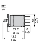 gama de produse: Harmony XB6 Tip produs sau componenta: Corp complet pentru buton iluminat nume scurt al dispozitivului: ZB6 material inel de fixare: Plastic cantitate indivizibila de vanzare: 1 tip si compozitie contacte: 1 NO + 1 NC operare contacte: Decuplare lenta conexiuni - borne: Conector Faston, dimensiune conexiune2.8 x 0.5 mm sursa de lumina: LED baza bec: LED integral culoare sursa de lumina: Albastru [Us] tensiune de alimentare nominala: 12...24 V c.a./c.c. CAD latime globala: 24 mm CAD inaltime globala: 18 mm CAD adancime globala: 51 mm descriere borne ISO nr. 1: (11-12)NC greutate neta: 0,009 kg utilizare contacte: Standard deschidere pozitiva: Cu conformitate cu IEC 60947-5-1 anexa K cursa de operare: 1 mm (schimbare stare electrică NC) 2 mm (modificarea stării electrice NO) 4,3 mm (cursă totală) forta de actionare: 1,6 N modificarea stării electrice NO 2,5 N schimbare stare electrică NC Material contacte: Aliaj de argint (Ag/Ni) protectie la scurtcircuit: 6 A cartuş fuzibil tip gG conformitate cu SR EN 60947-5-1 [Ui] tensiune nominala de izolatie: 250 V (grad de poluare 3) conformitate cu IEC 60947-1 [Uimp] tensiune de tinere la impuls: 4 kV conformitate cu IEC 60947-1 [Ie] curent nominal de utilizare: 3 A la 120 V, AC-15, B300 1,5 A la 240 V, AC-15, B300 0,1 A la 250 V, DC-13, R300 0,22 A la 125 V, DC-13, R300 durabilitate electrica: 1000000 cic, AC-15, 2 A la 230 V, rata de functionare 1000000 cic, DC-15, 2 A la 230 V, rata de functionare securitatea electrica IEC 60947-5-4: Λ = 10exp(-8) la 5 V si 1 mA cu nivel de incredere 90 % conformitate cu SR EN 60947-5-4 tip semnalizare: Stabil limitele tensiunii de alimentare: 6…30 V c.a./c.c. consum de curent: 15 mA incercare la supratensiuni tranzitorii: 1 kV contact direct conformitate cu IEC 61000-4-5 2 kV in aer liber conformitate cu IEC 61000-4-5 tratament protector: TC temperatura ambietala pentru depozitare: -40…70 °C temperatura ambientala de functionare: -25…70 °C clasa de protectie la electrocutare: Clasa II conforming to IEC 61140 standarde: IEC 60947-5-5 UL 60947-1 IEC 60947-1 JIS C 4520 JIS C 852 SR EN 60947-5-1 CSA C22.2 No 15 certificari produs: CCC CSA UL GOST rezistenta la vibratii: +/- 3 mm (f= 2…500 Hz) conforming to IEC 60068-2-6 5 gn (f= 2…500 Hz) conforming to IEC 60068-2-6 rezistenta la socuri: 30 gn (durata = 18 ms) pentru half sine wave acceleration conformitate cu IEC 60068-2-27 50 gn (durata = 11 ms) pentru half sine wave acceleration conformitate cu IEC 60068-2-27 rezistenta la tranzienti rapizi: 2 kV conformitate cu IEC 61000-4-4 rezistenta la campuri electromagnetice: 10 V/m conformitate cu IEC 61000-4-3 rezistenta la descarcari electrostatice: 6 kV pe contact (pe părţile metalice) conformitate cu IEC 61000-2-6 8 kV in aer liber (in părţile izolate) conformitate cu IEC 61000-2-6 emisie electromagnetica: Clasa B conformitate cu IEC 55011