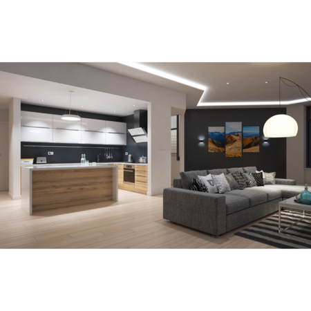 Shades made of milky glass evenly disperse and soften the light. The light emitted has a