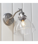 An authentic 'resto' style adjustable wall light, finished in brushed silver paint with authentic knurled lamp holder details and clear glass shades. Featuring an adjustable knuckle and accessible on/off switch, pair this wall light with filament LED lamps for that perfect industrial style. The perfect addition for today's stylish homes to create that on trend bar, bistro look.