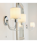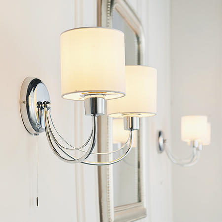 This twin wall light has a polished chrome finish and comes complete with white shades. Matching ceiling light and alternative finish available
