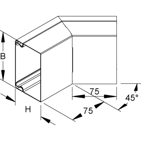 Cot exterior 45° cu capac, 60x150 mm, otel, prezincat conform DIN EN 10346 Conducta de protectie pentru cabluri Cot exterior 45°, cu capac snap-on, partea inferioara a conductei neperforata, legatura echipotentiala a capacelor se realizeaza automat la fixare, trebuie sa se comanda accesorii pentru imbinare echipotentiala L, comanda doua placi de imbinare... separat.