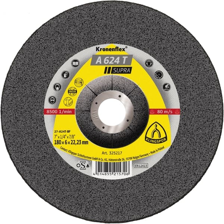 Discuri de polizare Kronenflex pentru Otel, Otel inoxidabil, Material turnat A 624 T Supra - Diametru 115mm, Grosime 6mm, Alezaj 22,23mm Kronenflex