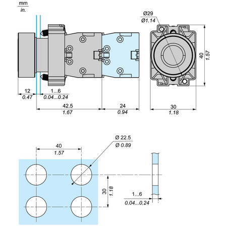diametrul de montaj: 22,5 mm