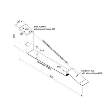 Element montaj panou fotovoltaic pentru acoperis plat tip terasa – suport tip U TRV