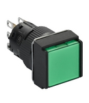 Buton Iluminat Verde Ø 16, Patrat, Blocare Incastrata, 12, 24 V, 1No+1Nc Schneider