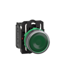 Buton luminos verde, incastrat complet Ø22 cu revenire cu arc 1NO+1NC 24V Schneider