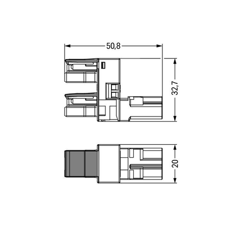 h-distribution connector; 2-pole; Cod. B; 1 input; 2 outputs; outputs on one side; 2 locking levers; gray Wago