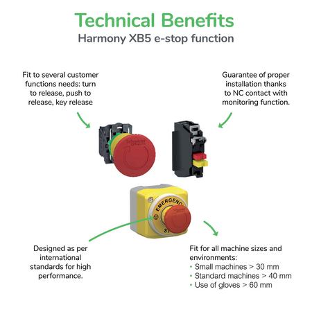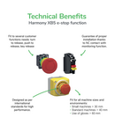 Harmony XB5, Buton oprire urgenta iluminat, antimicrobian, Ø22, trasucire pentru revenire, alb/rosu LED, 24 V AC/DC, 1 NO + 1 NC Schneider
