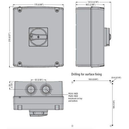 IEC/EN TYPE IP65 Cutie ne metalica cu intrerupator rotativ, tripolar. WITH ROTATING RED/YELLOW HANDLE, 80A Lovato