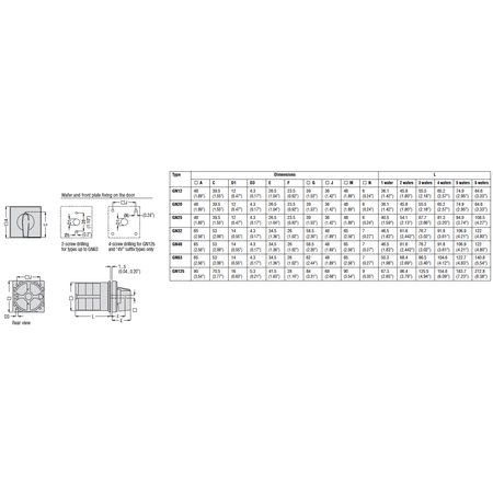 Intrerupator rotativ cu came, GN SERIES, U montaj pe panou. ON/OFF SWITCH, FOUR-POLE – 2 WAFERS – SCHEME 92, 63A
