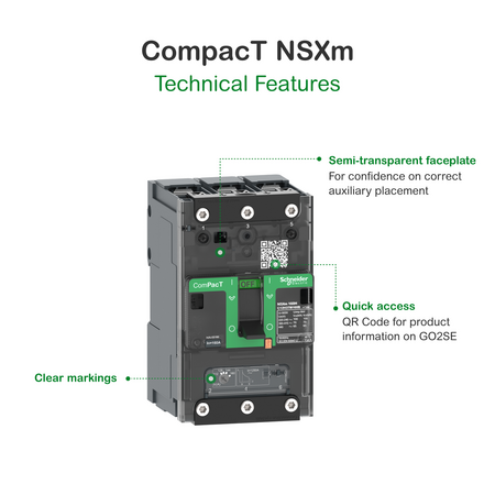 Intreruptor CompPacT NSXm E (16 kA la 415 VAC), 4P 4d, 32A TMD unitate de declansare, conectori EverLink Schneider