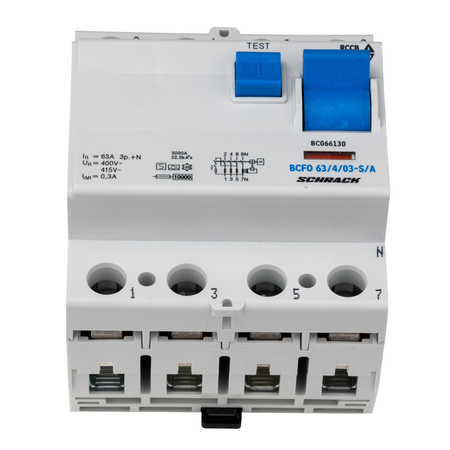 EAN-Code 9004840393958 Latime neta 70,00mm Inaltime 80,00mm Adancime neta 71,00mm Masa neta 0,32kg. disipare 10,50W Temperatura minima a mediului ambiant -25°C Temperatura maxima a mediului ambiant 60°C Curent nominal 63A Poli 4 Valoare curent de defect 300mA Tip S (selectiv) Categorie produs A (sensibil la curent alternativ si pulsatoriu) Serie seria BC Capacitate de rupere nominala 10kA Standard produs EN 61008