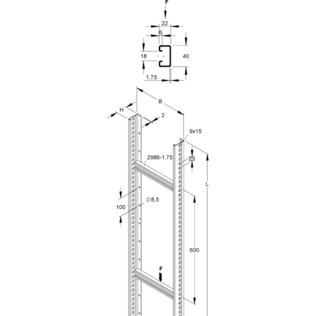 Jgheab trepte scara de cabluri verticale 600 mm, cu profile laterale perforate continuu STM 60.306/3 Niedax
